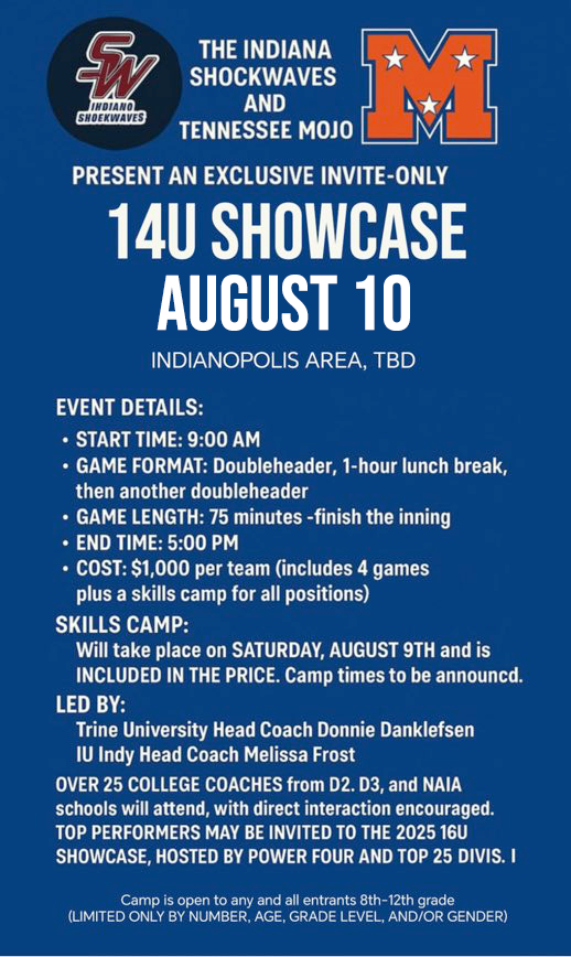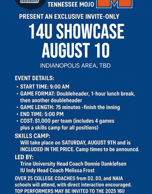 Consists of Pitching, Outfield and Hitting, Individual Showcase, and Team Showcase